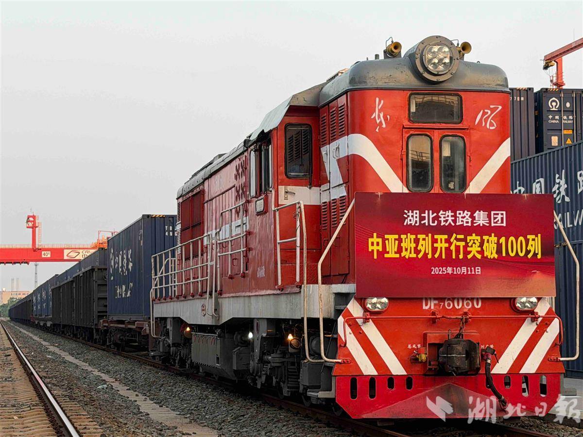 湖北日报讯(记者李先宏、严芳婷、通讯员芦忠章)10月11日,一声长笛,一列满载光伏组件、机械配件、化工材料的中亚班列,缓缓驶出武汉中铁联集吴家山中心站,向着乌兹别克斯坦奔驰而去。这是中亚班列(武汉)运营以来开行的第100列班列。至此,这条横贯亚欧大陆的“钢铁驼队”累计运送货物超7万吨,货值12.5亿元,覆盖中亚五国及“一带一路”沿线8个国家25个城市。