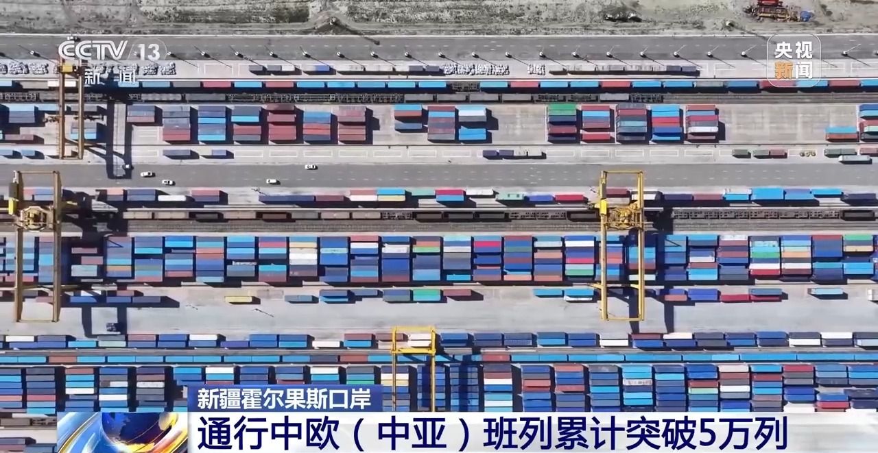 昨天,一列满载电子产品、机电设备、日用百货等货物的中欧班列从霍尔果斯铁路口岸驶出,开往波兰马拉舍维奇,标志着经霍尔果斯铁路口岸通行中欧(中亚)班列数量累计突破5万列。