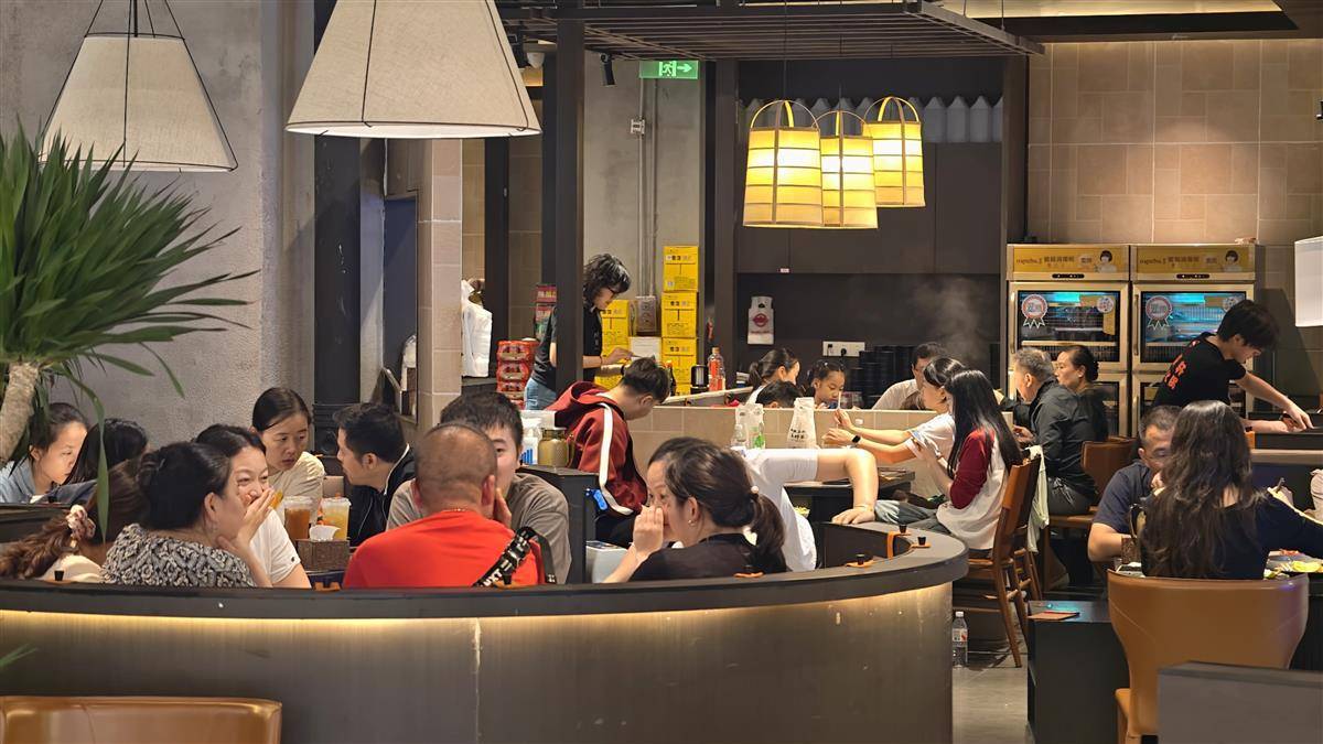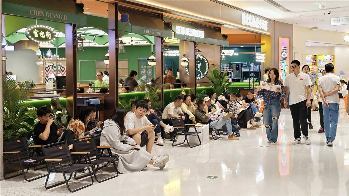 10月11日晚,武汉滨江天街餐饮区再现排队热潮。尽管国庆长假已过,各餐厅门前仍普遍需排队等位,市民消费热情不减。作为新开业的“微度假”地标,该项目吸引大量食客沉浸式体验“逛商场如度假”的独特氛围,以及超40%武汉首店及旗舰店的集聚效应,持续释放消费动能。 (湖北日报全媒记者 陈少哲 摄)