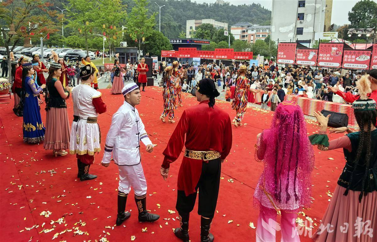 此次小巴扎开幕,以 “歌舞 + 市集” 的形式让宜昌市民近距离感受新疆魅力,为深化两地民族团结与文旅融合注入新活力。(湖北日报全媒记者 刘曙松 摄)