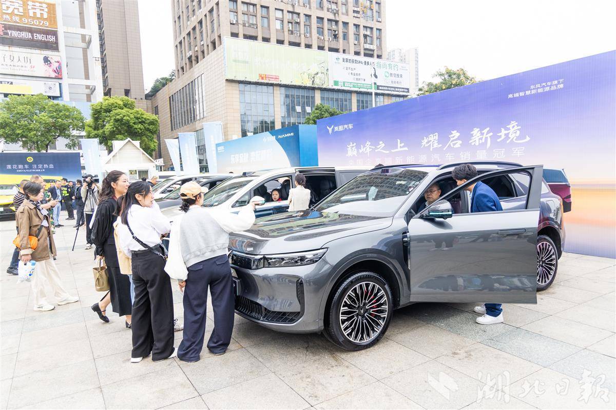 活动现场,猛士M817、猛士917、岚图FREE+、全新岚图梦想家、岚图追光L、东风风神L8、东风奕派eπ008、东风纳米06、东风本田CR-V等多款东风好车亮相,还有新款莲花ELETRE、小鹏G6、小鹏G7、吉利银河M9、别克E5等新能源汽车吸引广大市民围观体验。