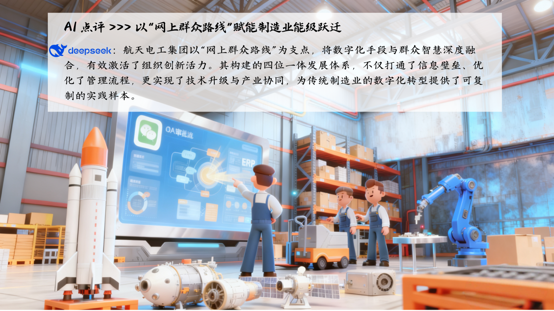 据悉,创立近70年的航天电工集团,面对“十四五”智能制造升级浪潮,突破传统路径依赖,构建起“新媒体矩阵+智能办公+人机协同+民主决策”四位一体的发展体系,将“网上群众路线”深度融入生产经营各环节,推动企业从传统制造“跟跑者”跃升为智能制造“领跑者”。
