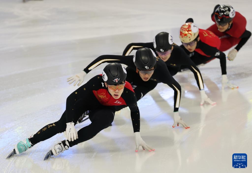 10月12日,黑龙江省冰上训练中心选手王天佑(左一)在甲组男子1000米决赛中。最终,他夺得冠军。