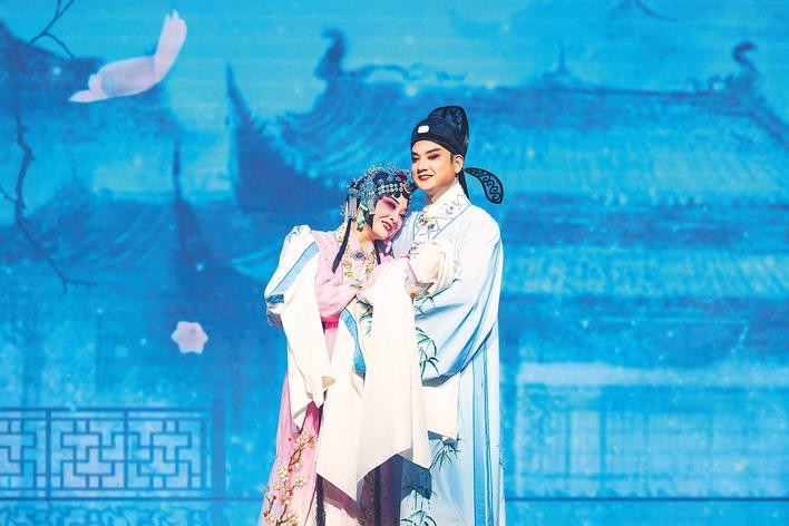10月12日晚,黄梅戏《罗帕记 ·春情无限心花放》在演出中。 (栏目图片由湖北日报全媒记者 何宇欣 实习生 胡馨予 曹若妍 摄)