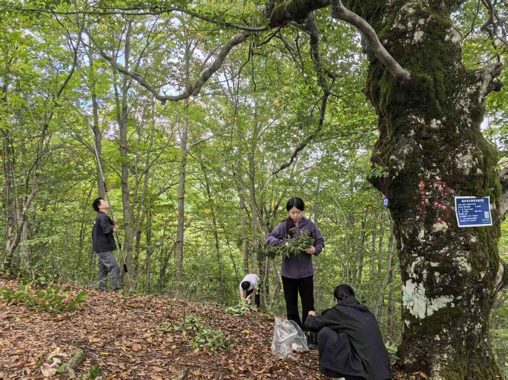 九月下旬,杜克兵教授及其团队到古树群采集亮叶水青冈种子