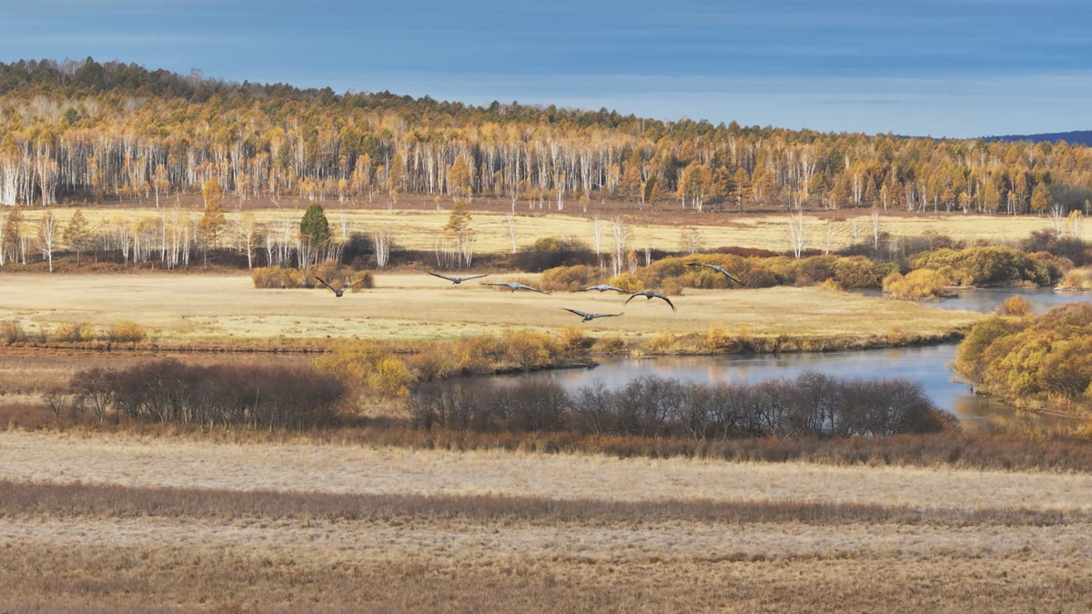 As autumn deepens, the Black-billed Capercaillie National Nature Reserve in Heihe, Heilongjiang province, recently welcomed a large group of migratory birds.