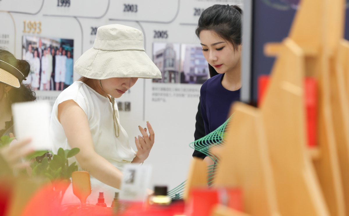 A visitor chooses products at the China International Consumer Products Expo in Haikou, capital of South China's Hainan province, on April 15, 2024. [Photo/Xinhua]