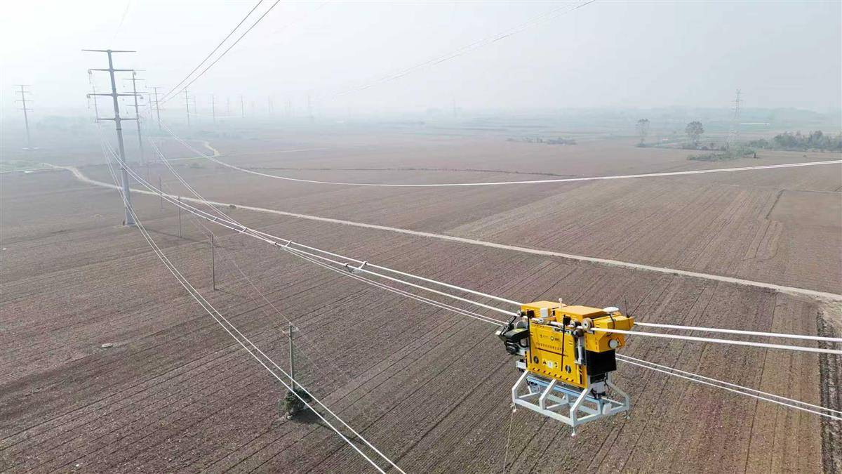 在输电线路上,间隔棒是用来使邻近导线保持一定距离的器具,日常维护、更换间隔棒,需要由工人爬上高塔,沿线攀缘过去才行,如今,国网湖北电力研发的一台机器人已经可以胜任这项工作。