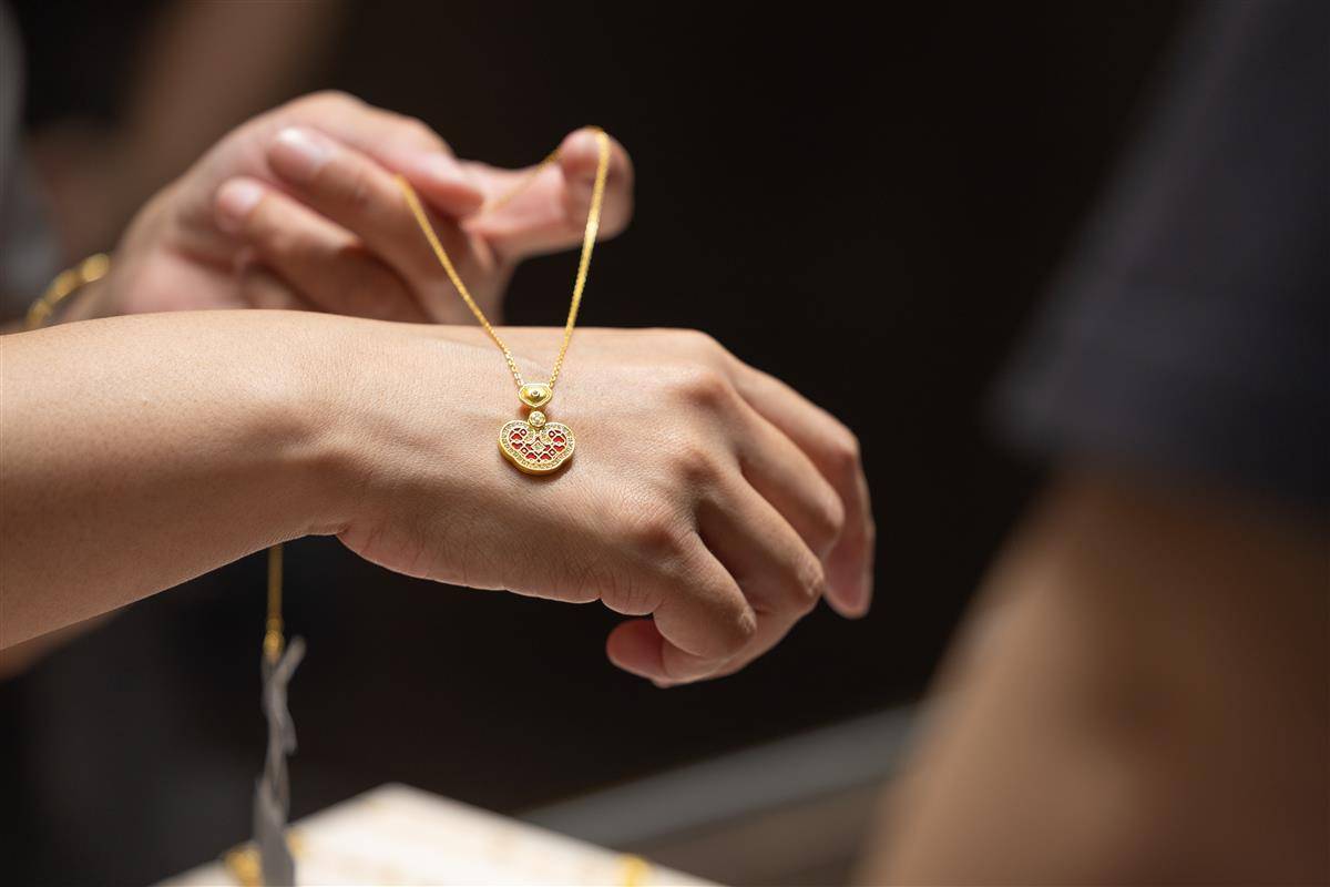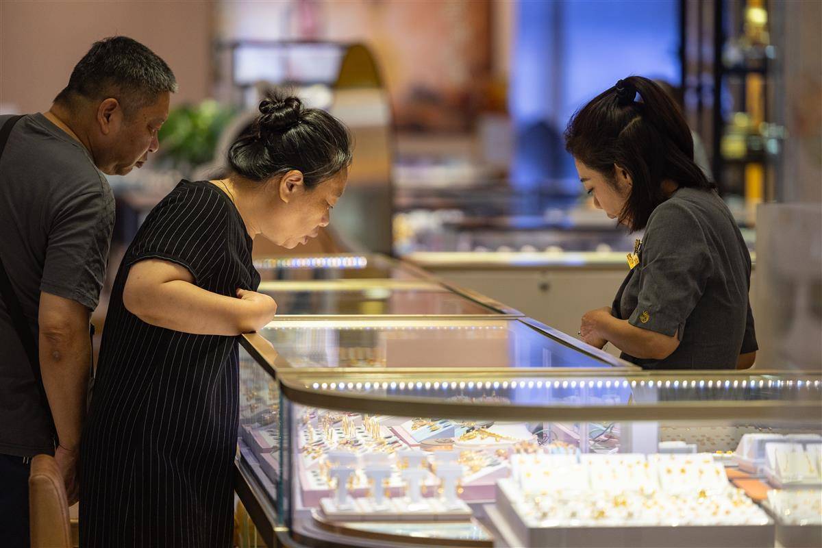 顾客在武商MALL·世贸周大福店内选购金饰。