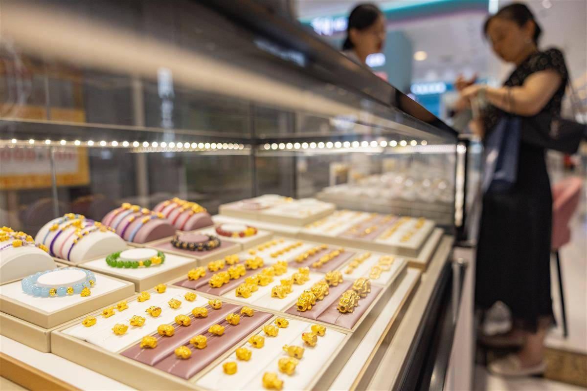 顾客在武商MALL·世贸黄金珠宝区内选购金饰。