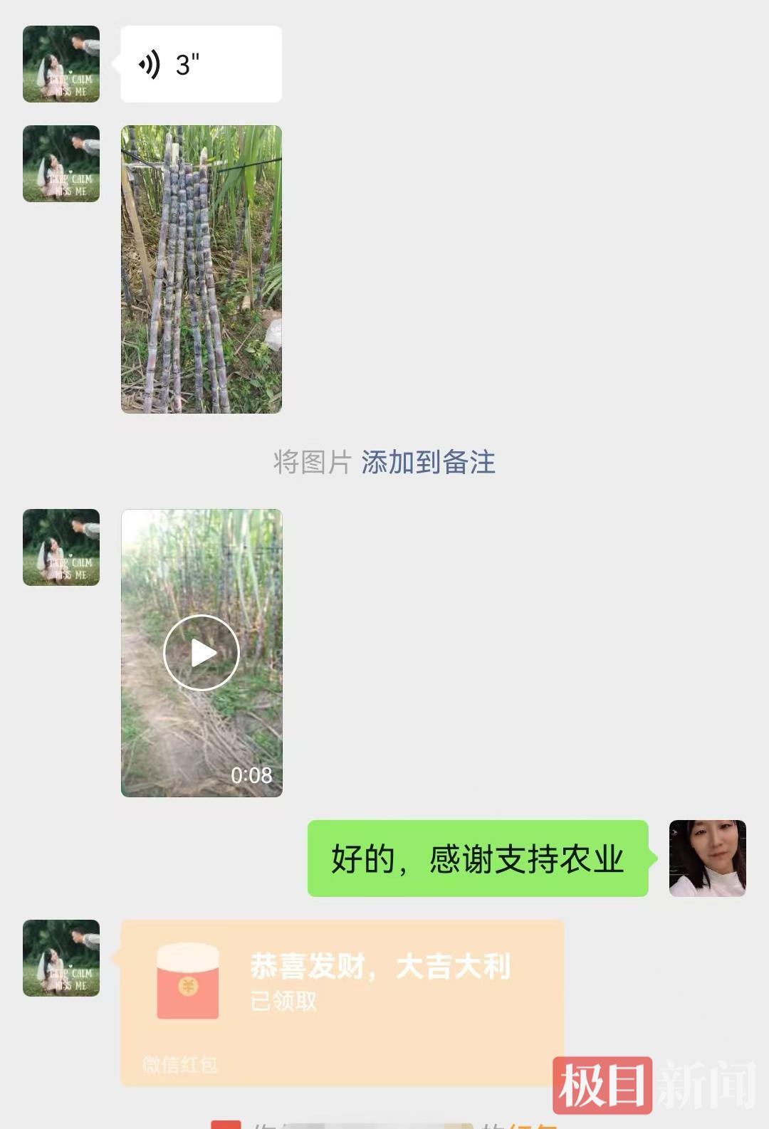 事后,戴静在监控里看到,一位三十岁上下的灰衣男子,利落地砍下六根甘蔗。他没有立即离开,而是认真拍了照片和视频,通过微信将60元钱转给了戴静。