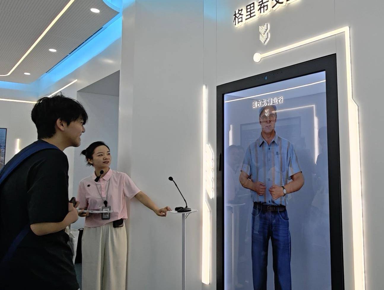 9月份,江汉大学学子就曾与格里希数字人“对话”。(记者张竞恒摄)