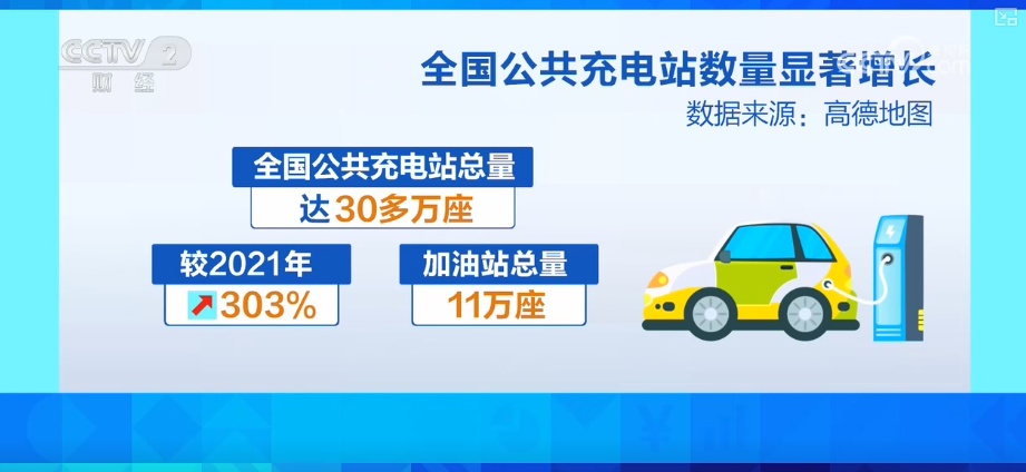 据高德地图的统计,目前,全国公共充电站总量达30多万座,较2021年增长303%,远超过加油站的11万座,为跨省长途出行提供了保障。