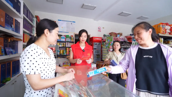 2025年6月25日,监利市荒湖管理区文明实践志愿者引导群众在“美丽荒湖爱心积分兑换超市”兑换奖品。李超 摄