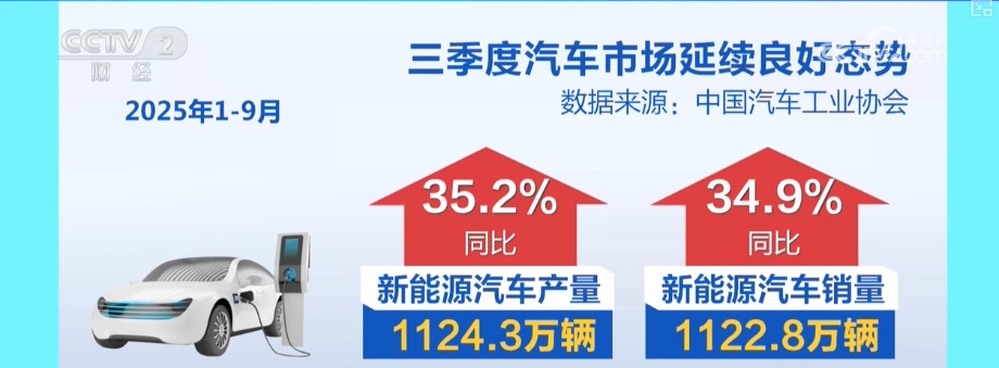 最新数据显示,1—9月份,汽车产销量分别完成2433.3万辆和2436.3万辆,同比分别增长13.3%和12.9%。其中,新能源汽车产销量均超过1100万辆,同比增长均超过30%,新能源汽车新车销量达到汽车新车总销量的46.1%。