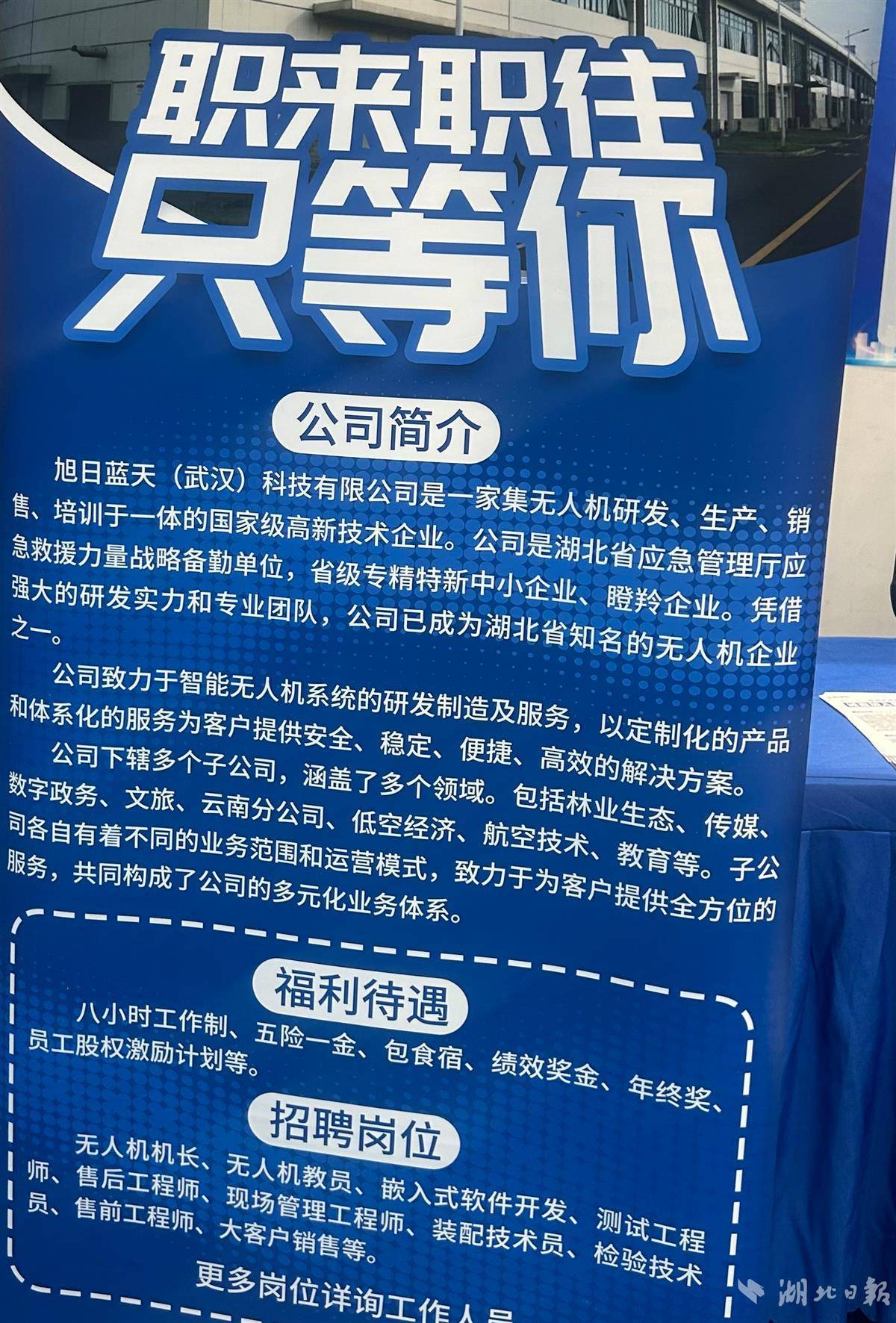 旭日蓝天(武汉)科技有限公司招聘岗位涉及无人机机长、无人机教员、测试工程师、售后工程师、大客户销售等。30岁的余鹏曾在福建服役,对无人机飞手很感兴趣,一大早从长江新区赶来应聘。