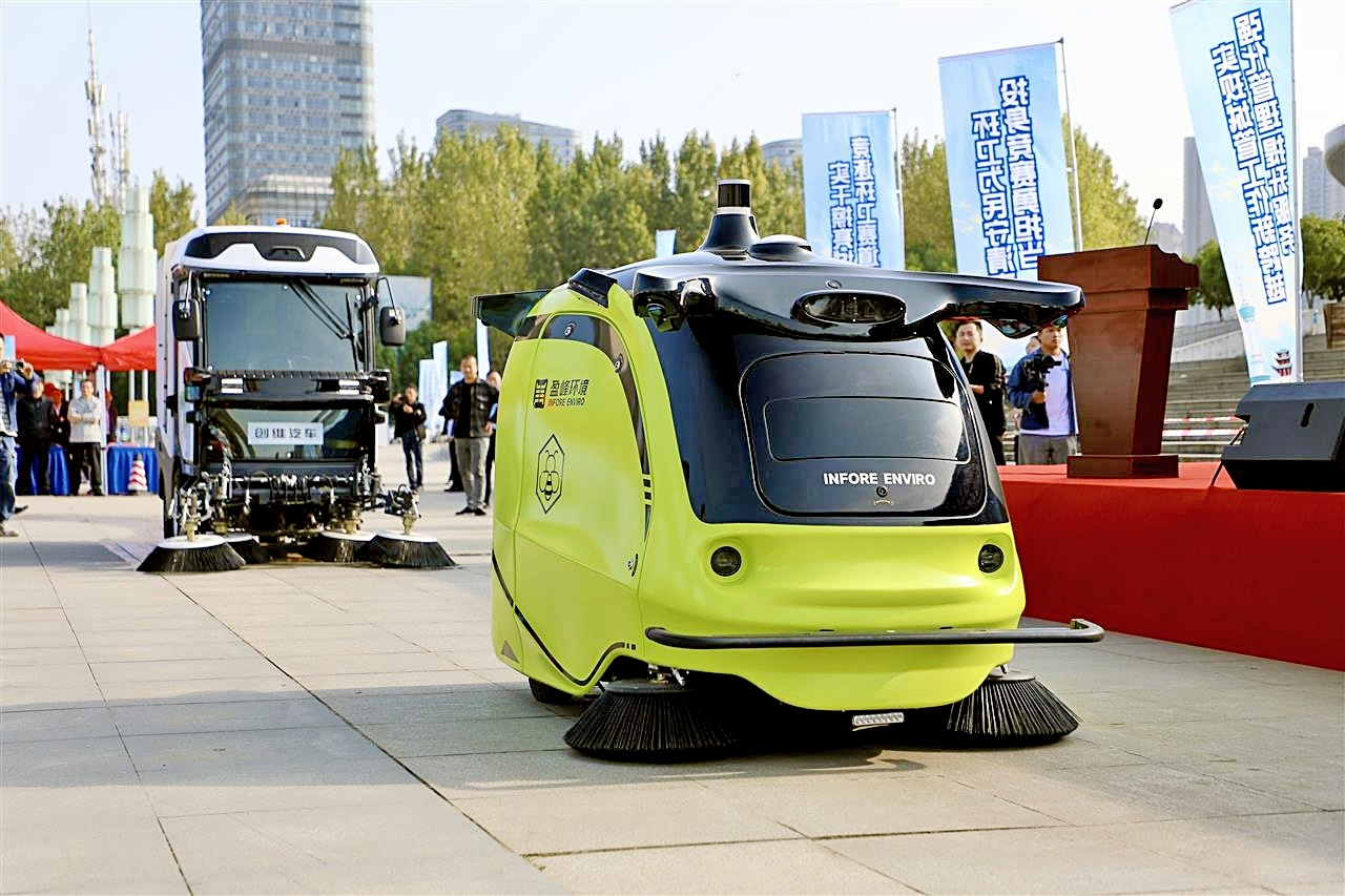 高压清洗车与吸收扫车联合作业,既要洗好路,还不能扰民;小型电动保洁车增加走“S”步,检验驾驶技能和捡拾白色垃圾的能力;可以自己充电、自动洗扫路面、自己倒垃圾的无人机器人将走进武汉……