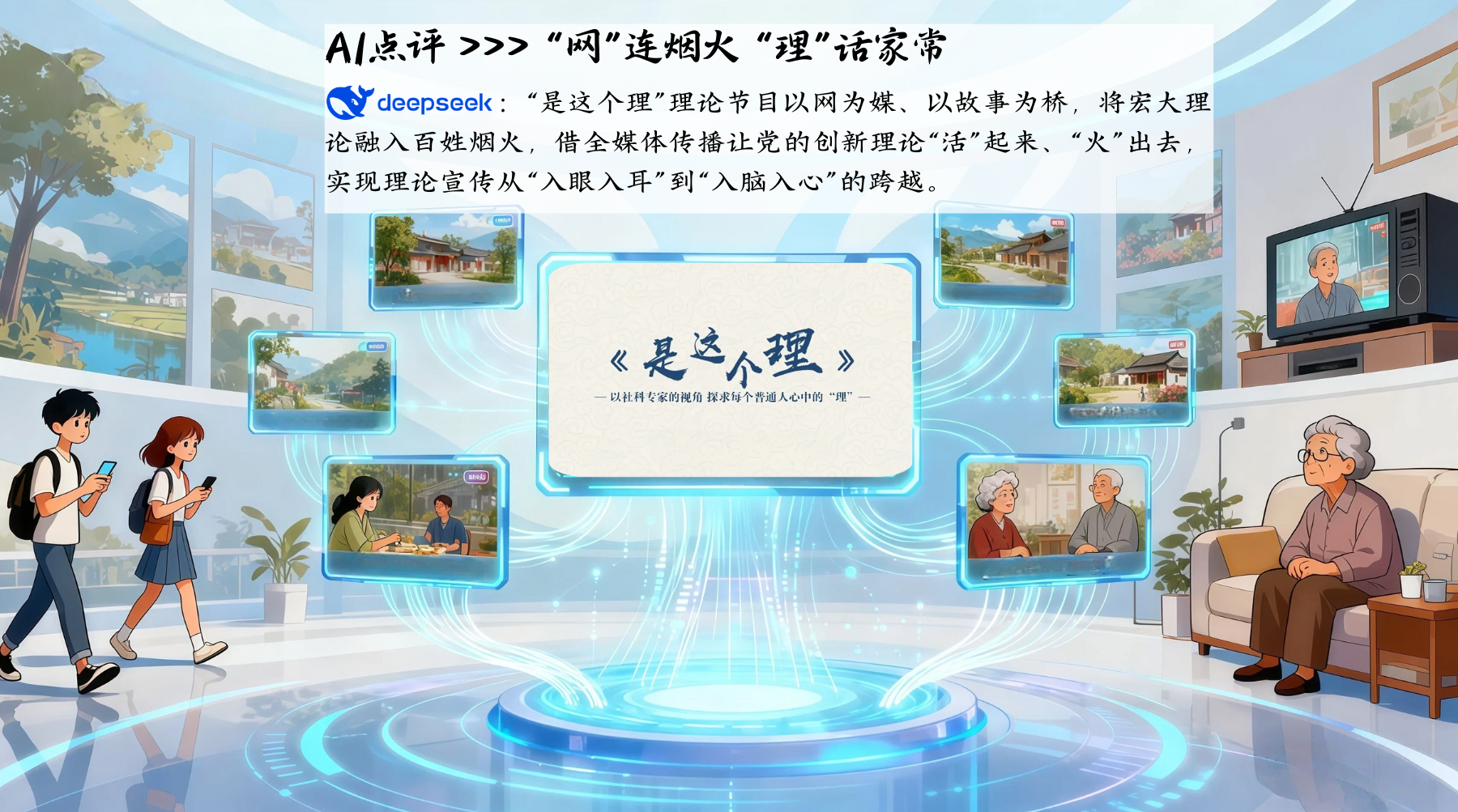 自2020年4月开播以来,“是这个理”累计播出节目126期,经精细化剪辑与多渠道分发,全网总传播量突破13亿次。2025年起单期节目点击量稳定超1000万,微信公众号、抖音、微博等平台二次传播占比达20%以上,《住进峡江水墨画》《大别山下薪火传》单期节目点击量突破3000万,形成网络爆款,理论宣传成功出圈,引发网民广泛共鸣。
