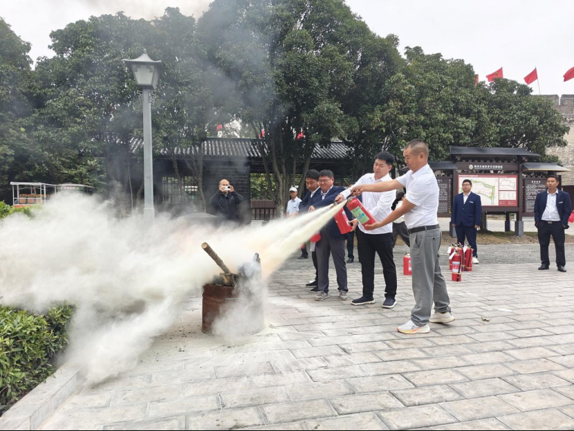 实战赋能强本领,锻造应急“硬队伍”。为全面提升景区从业人员和社区工作人员的消防安全素养与自救互救能力,大队组织消防员对街道社区工作人员、东门景区各商铺负责人及员工开展了系统的消防知识培训和灭火实操演练。培训内容紧扣景区实际,涵盖火灾隐患排查、初起火灾扑救、疏散逃生引导等。通过“手把手”教学、“面对面”实操,有效强化参训人员的实战技能。同时,大队主动指导街道社区,帮助其科学制定、完善针对性的灭火应急处置预案,进一步明确了应急响应流程、人员分工和处置措施,确保关键时刻能够有序、高效应对。