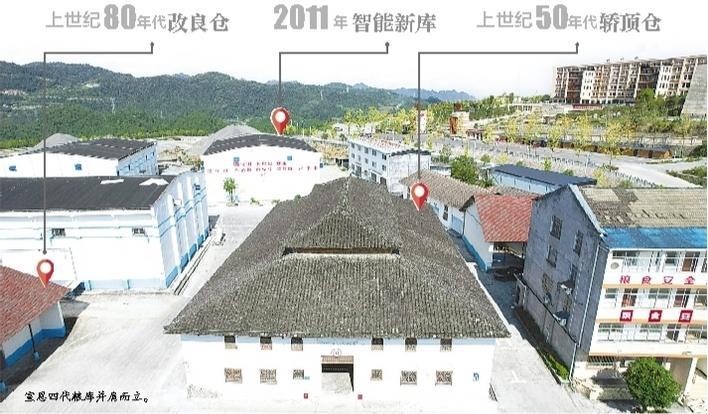 院落中央,一座青瓦白墙的老建筑静静矗立——这便是始建于1951年的宣恩县第一粮库。放眼望去,四代粮库错落有致:上世纪70年代的砖仓和80年代的改良仓、2011年建成的智能新库,共同勾勒出一幅粮食安全保障的时空画卷。