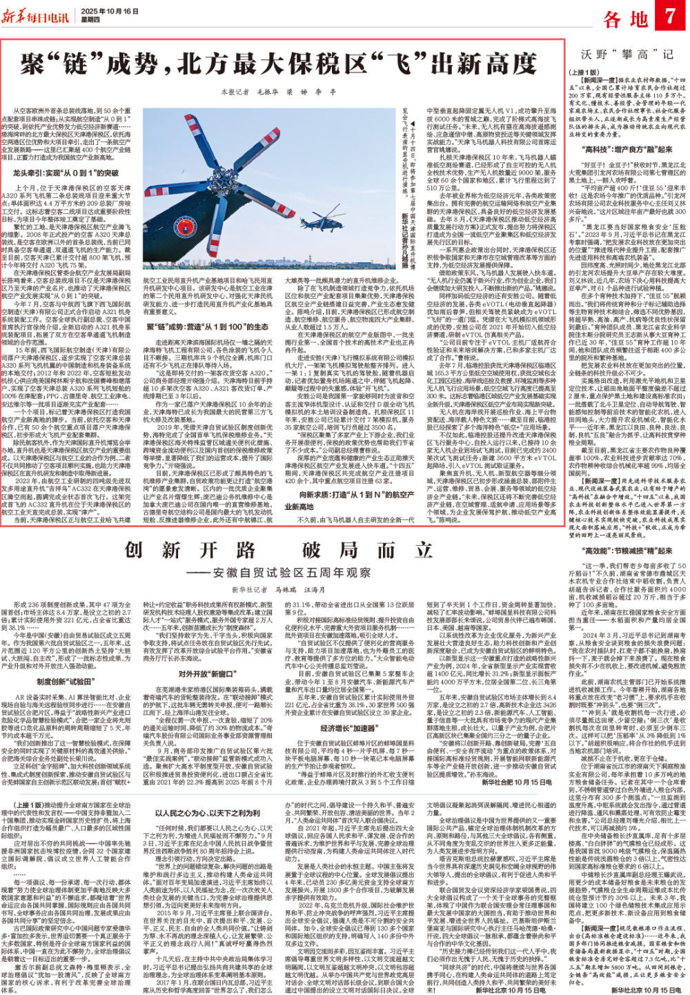 从空客欧洲外首条总装线落地,到50余个重点配套项目串珠成链;从实现航空制造“从0到1”的突破,到依托产业优势发力低空经济新赛道……渤海湾畔的北方最大保税区天津港保税区,依托海空两港区位优势和大项目牵引,走出了一条航空产业发展新路——这里已汇聚超400个航空产业链项目,正蓄力打造成为我国航空产业新高地。