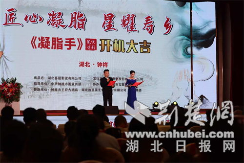 荆楚网(湖北日报网)讯(通讯员 王惠茹 汪龙)10月15日晚,由著名导演胡玫执导,焦俊艳、张天阳主演,朱铁、句号、黄灿灿、孙之鸿、郭柯宇等演员联袂出演的电影《凝脂手》开机仪式在湖北钟祥王府大酒店隆重举行。当天,受邀嘉宾、电影团队、企业代表、媒体记者以及省、荆门、钟祥相关负责同志共400余人参加了开机仪式。