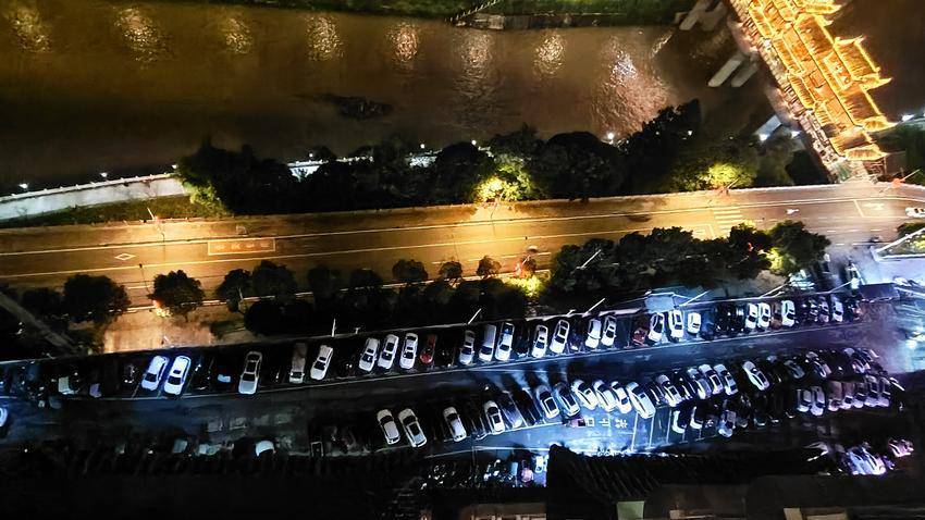 灯火阑珊处,悠悠溇水串联起两岸的繁华与宁静。横跨水面的几座大桥,在不同方位闪烁着璀璨灯火,像是镶嵌在丝带上的宝石,散发着迷人的光芒。