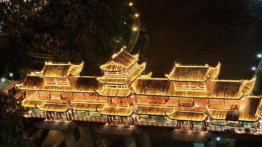 湖北日报客户端讯(通讯员杜雪平)10月15日的鹤峰容美之夜。站在高高的半岛楼层,凭栏观景,溇水宛如洒落人间的银河。