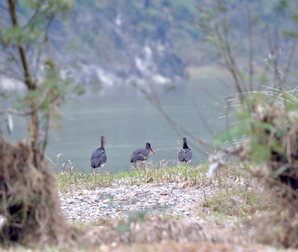 黑鹳是世界濒危鸟类,被称为“鸟中大熊猫”,在中国约有1000只,被列为国家一级重点保护动物。黑鹳喜欢栖息在偏僻而无干扰的开阔森林、河谷或沼泽地带,对水质、生态环境的要求严苛。