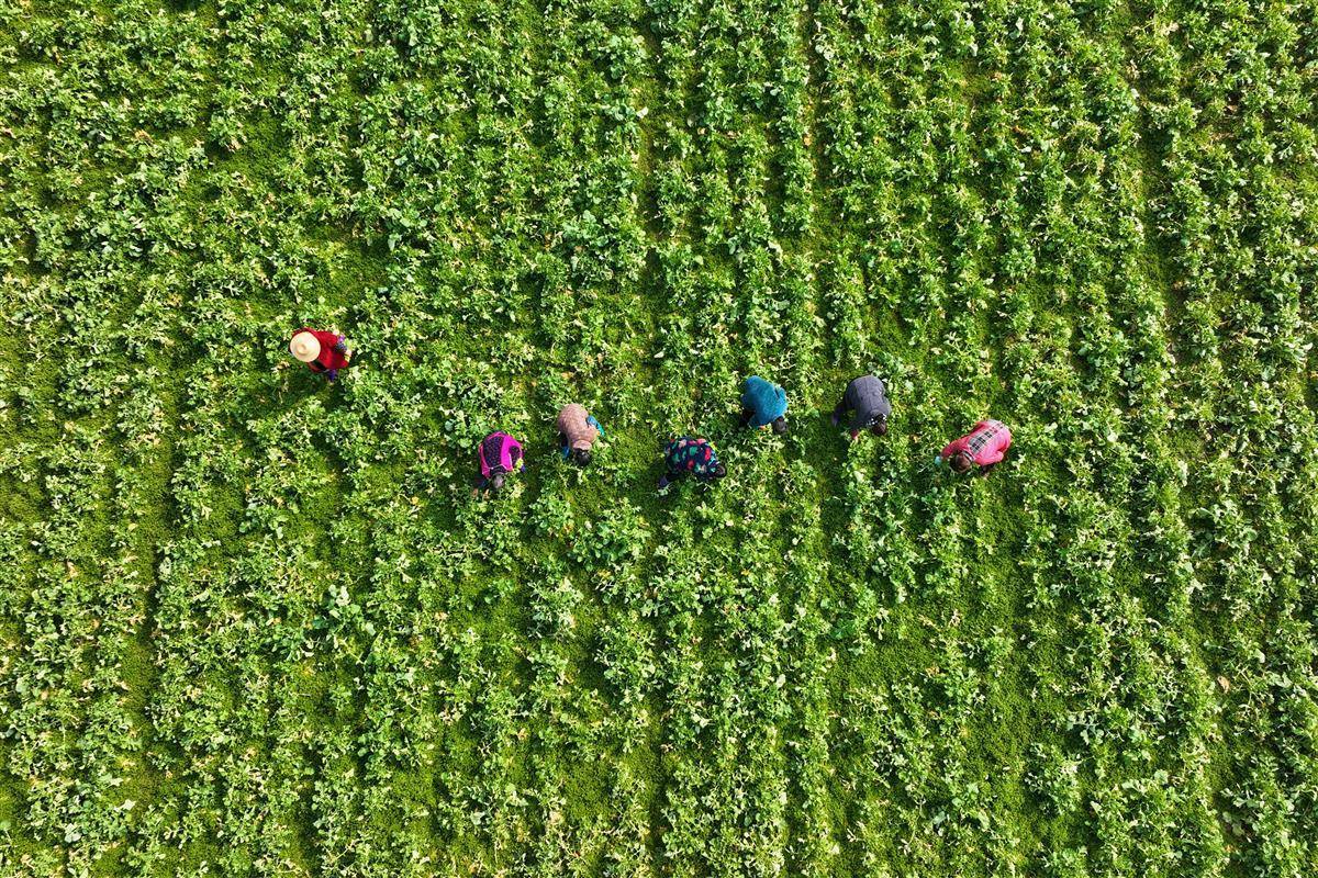 在恩施市崔家坝镇斑竹园村硒菜薹基地,村民正在采摘菜薹。(通讯员 张远明 摄)