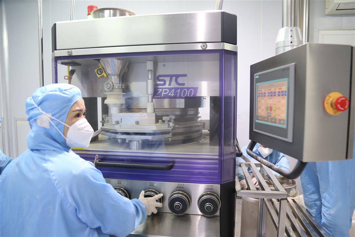 在恩施德源植物硒肽、植物硒蛋白提取车间,工作人员正在忙碌。(湖北日报全媒记者 蔡俊 摄)
