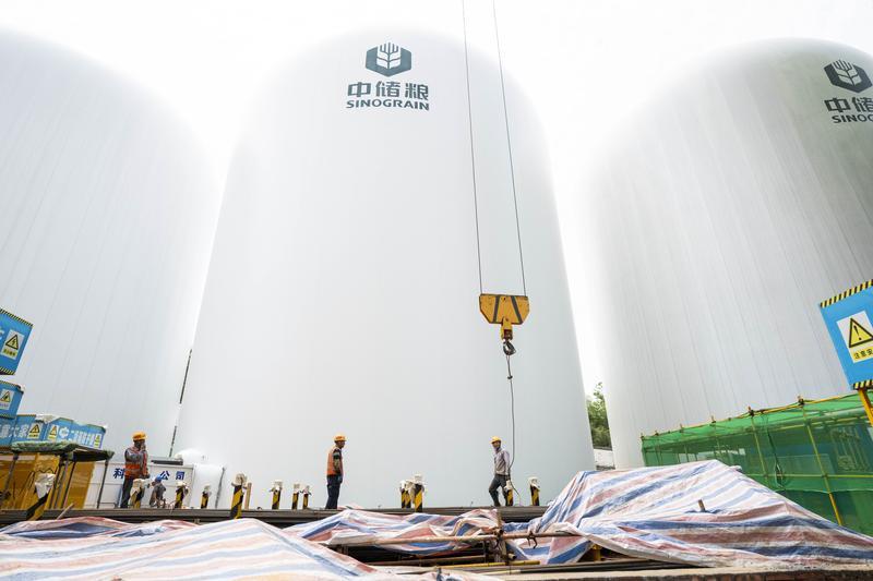 2025年5月6日在中储粮长沙直属库拍摄的气膜粮仓建设施工现场。新华社记者 陈思汗 摄