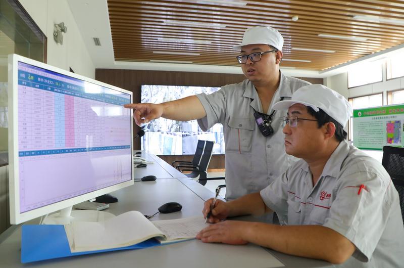 2025年7月22日,在山东梨花面业有限公司面粉制粉数字化中控室,工作人员通过数字化平台数据分析,控制面粉加工。新华社发(石龙迪 摄)