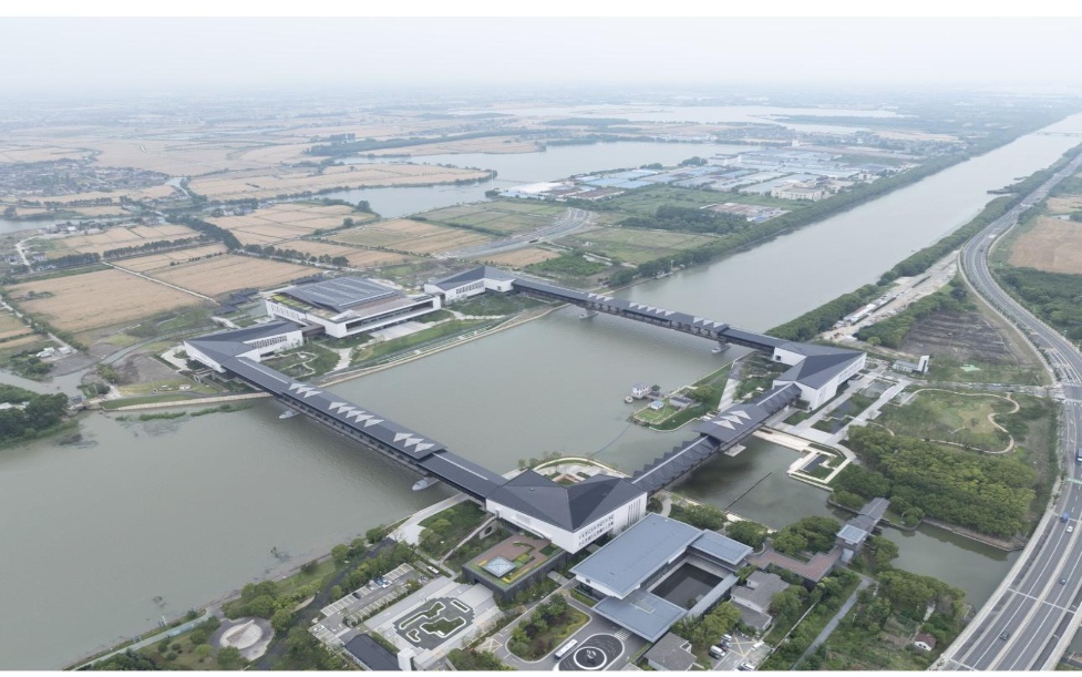 大家都知道长三角一体化水平高,那么在现实世界中跨越沪苏浙需要多久?在这里只要15分钟。我背后的建筑叫方厅水院,它位于上海、江苏、浙江的交界点,是长三角地区共同的“会客厅”,而我当前所在的地方是习近平总书记非常关心的长三角生态绿色一体化发展示范区,这个示范区横跨上海青浦区、江苏省苏州市吴江区和浙江省嘉兴市嘉善县,面积虽然只有2413平方公里,但其一体化水平已经走在全国前列。