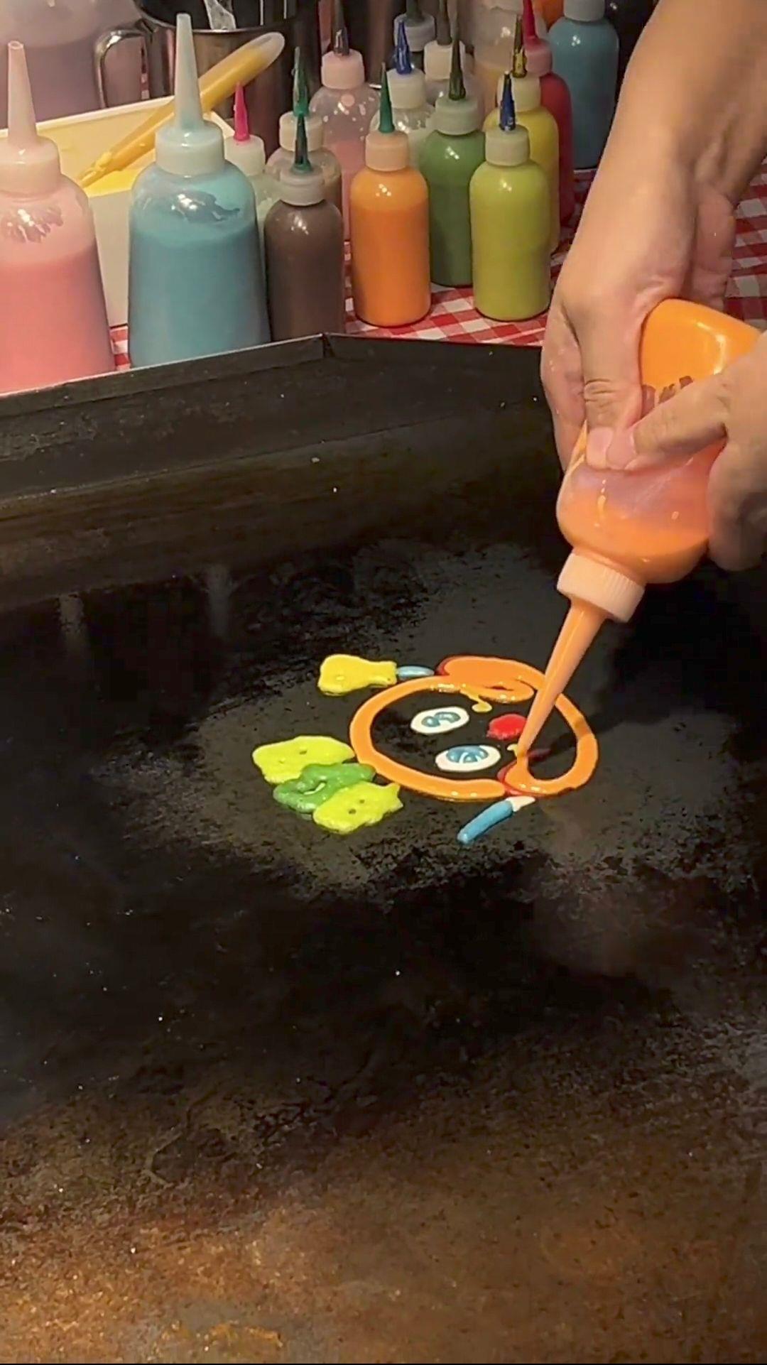 可爱的海绵宝宝、呆萌的蜡笔小新、炫酷的奥特曼……在社交平台上,网友们纷纷晒出视频,分享这名女摊主的作品,其制作的卡通煎饼就如同在作画。