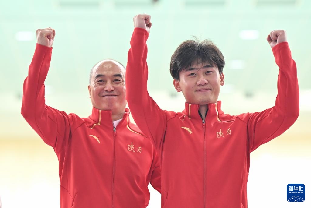 10月17日,陕西队选手刘宇坤在比赛后庆祝。他最终获得冠军。