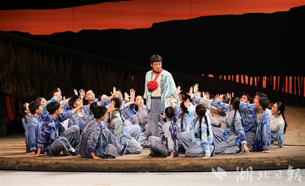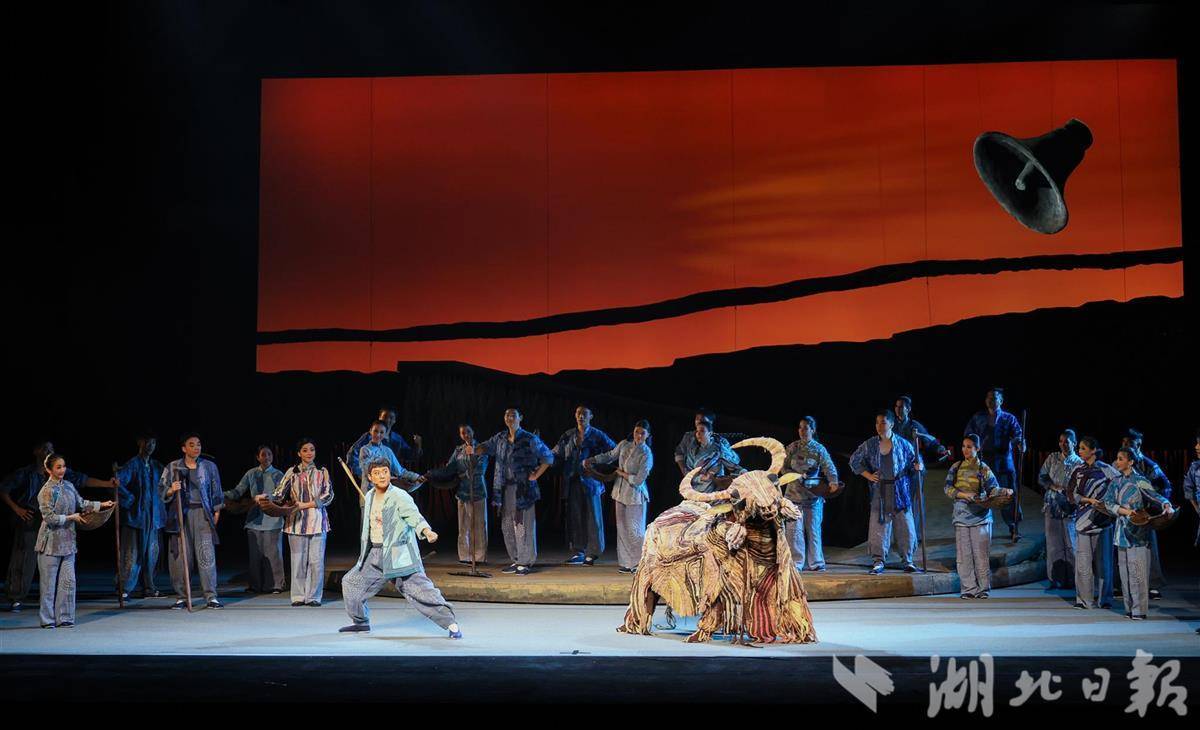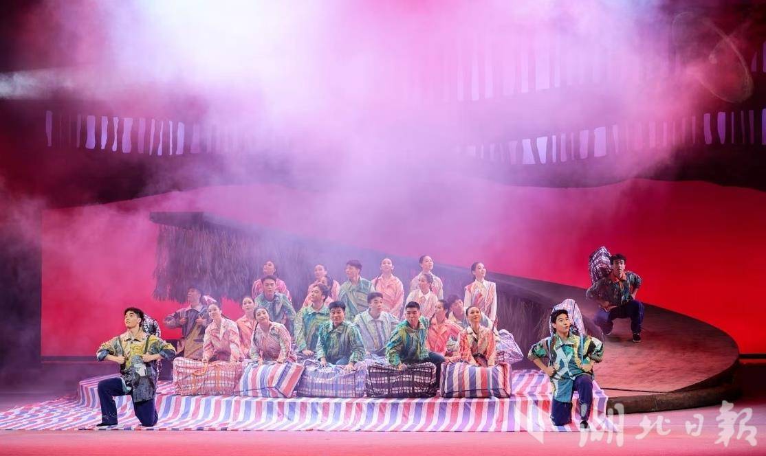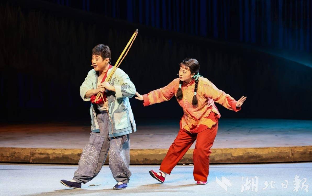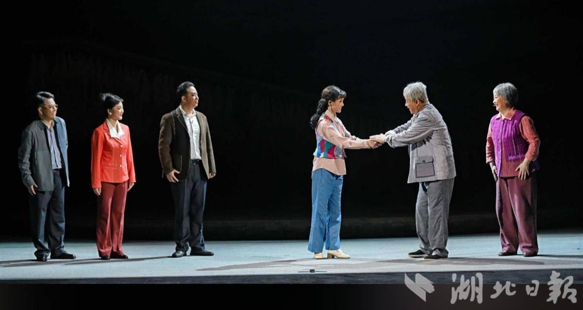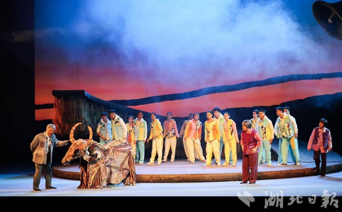 演出现场,随着开场一声“承包了!分田了!”的呼号,极具楚韵的唱腔和忙碌的劳动场面,瞬间将观众带入上世纪八十年代的火热乡村。剧中,以改革开放四十年的农村变迁为背景,通过江汉平原种粮大户、昔日农状元“田耕牛”一生的传奇故事,展现了土地流转、机械替代耕牛、发展现代生态农业等关键变革,最终刻画了老一辈劳动人民在时代浪潮中的思想转变与集体奋进,生动折射了改革开放以来的中国乡村巨变。