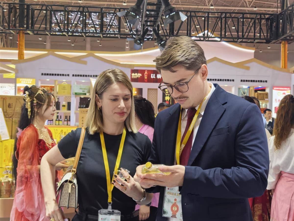 展会期间,2025“御宸房县黄酒”新品发布会同步举行。这款新品在延续传统手工酿造工艺的基础上,融合非遗古法与现代科技,独创“草本入曲”专利技术,现场卖出一万多箱。