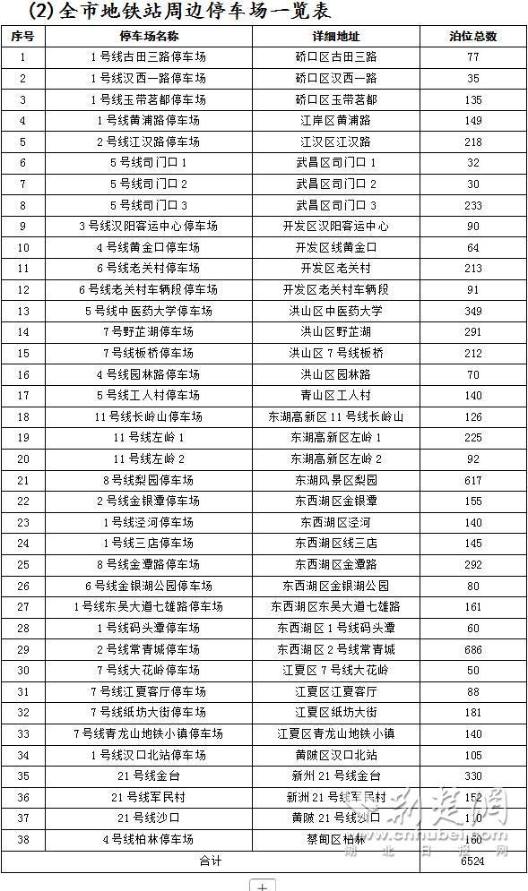 附表二:全市地铁站周边停车场一览表