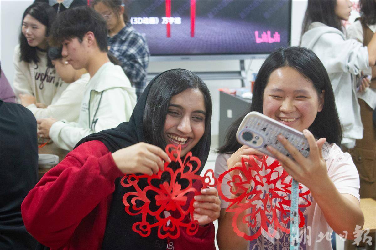 湖北日报讯(记者张歆、通讯员徐湘颖、范梦颖、赵彤彤)一根红线,联结不同国度的青春;一张红纸,剪出跨越文化的笑容。10月16日,武汉科技大学30余名中外学子开展“沁湖华韵”跨文化交流沙龙,通过中国结与剪纸两项传统技艺,沉浸式开启了一场指尖上的文化之旅。