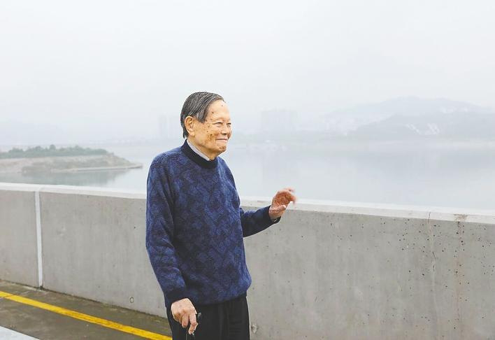 2018年,杨振宁登上三峡大坝坝顶。(三峡集团供图)