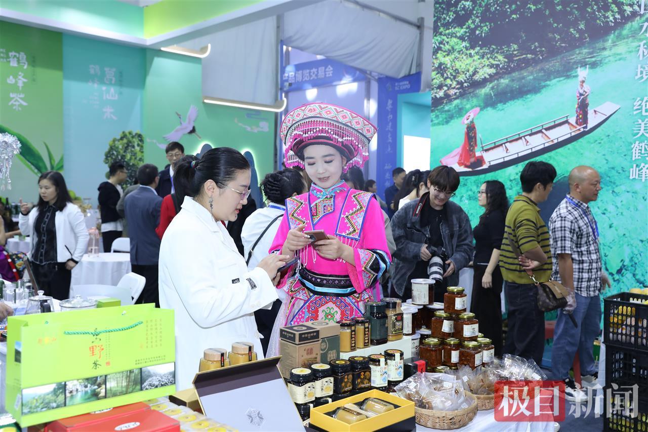 来凤馆内,色泽鲜润的来凤藤茶、香气浓郁的凤头姜、优质山茶油、富硒贡米等数十种特色农特产品整齐陈列,琳琅满目。来凤藤茶集团研发的“酉芯藤”新茶饮、“醒达”“睡达”功能片等衍生品也吸引了不少关注。湖北百顺农业开发有限公司标准馆内,锅巴土豆以其酥脆的口感,也吸引了大量顾客前来品尝、咨询。
