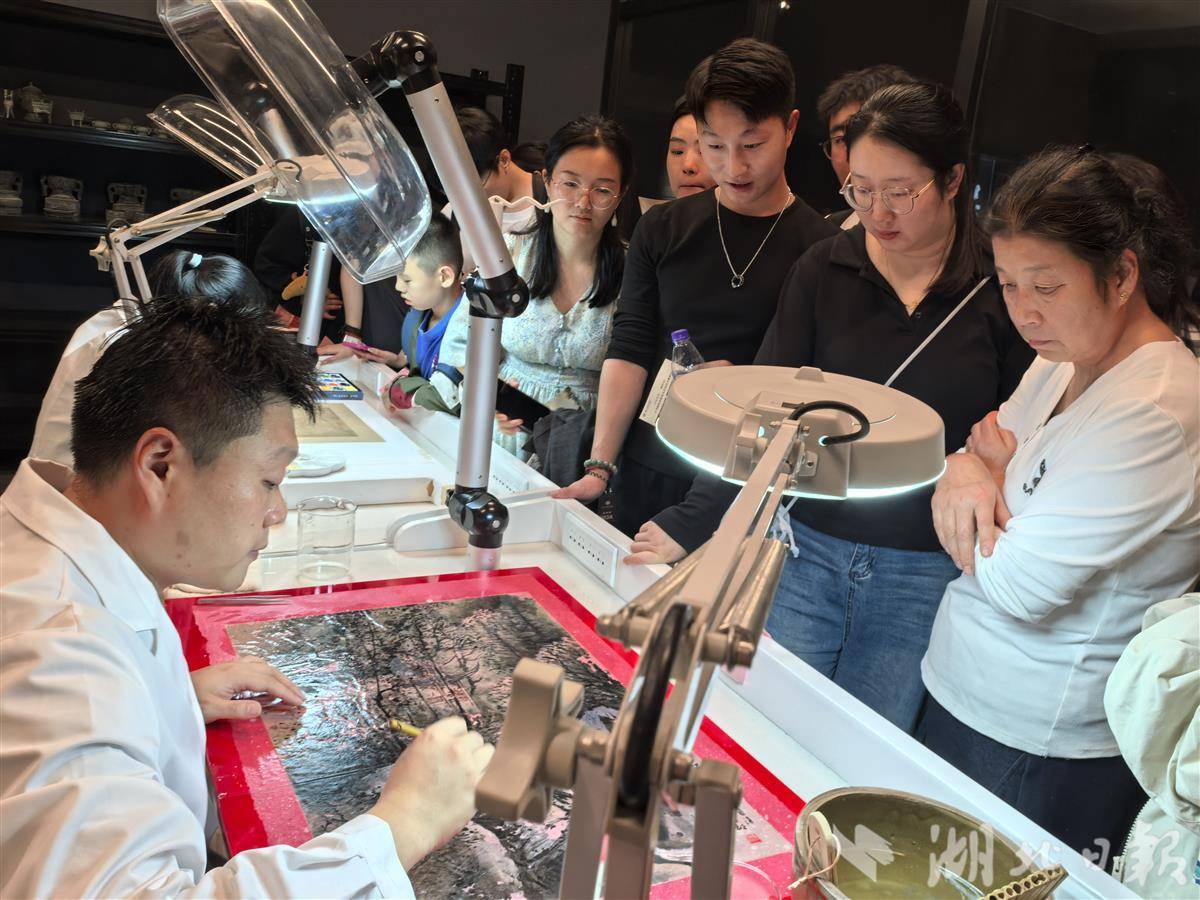 古书画装裱修复技艺沉浸式观摩活动区人头攒动(湖北日报全媒记者 海冰 摄)