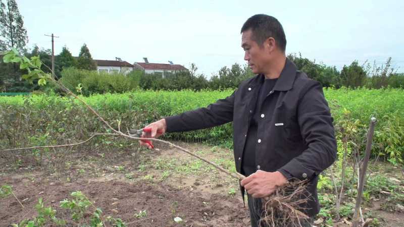 “树苗移栽的时候要定杆修剪,高度不能保留的太高,一般一米高左右就可以了,把这多余的枝条剪掉。栽的时候,要把叶片全部打掉,减少水分蒸发。” 黄练勇一边演示一边讲解,“对那些不知道怎么移栽的客户,我会直接现场移栽做示范,一步步告诉他们回去怎么种、怎么浇水、怎么施肥,确保他们能把苗栽活、栽好。”