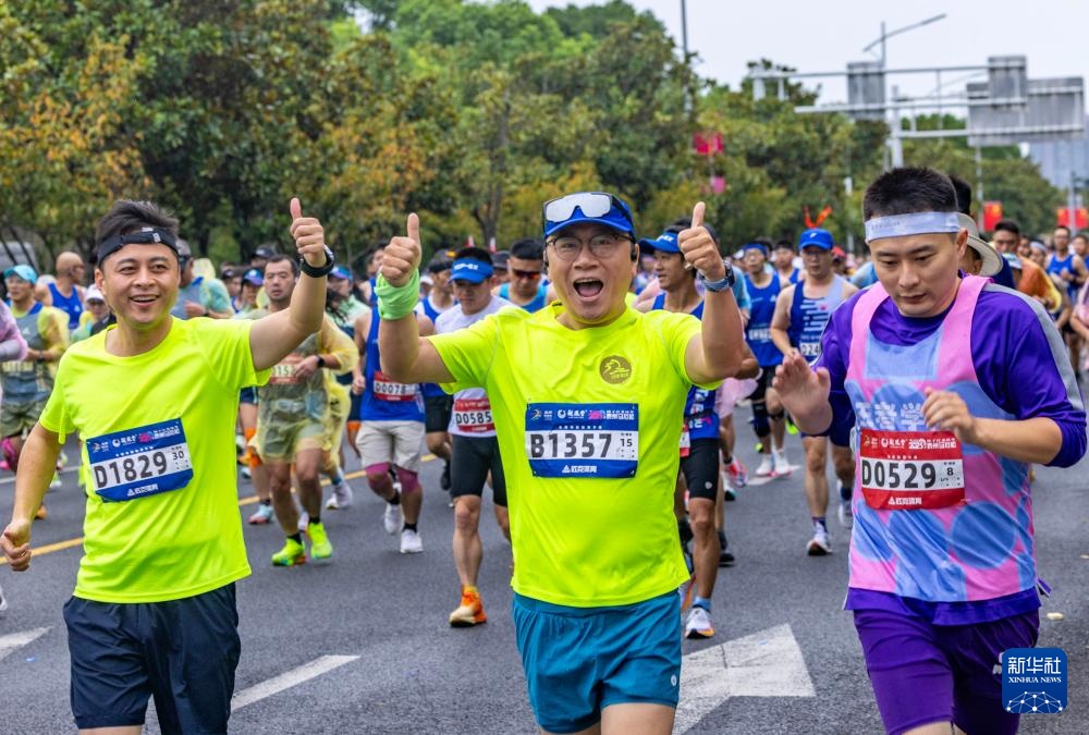 10月19日,选手从江苏泰州体育公园西门出发。