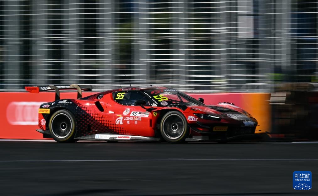 10月19日,由中国车手吕威/丹麦车手巴斯蒂安·布斯驾驶的原力赛车队赛车(前)在比赛中。