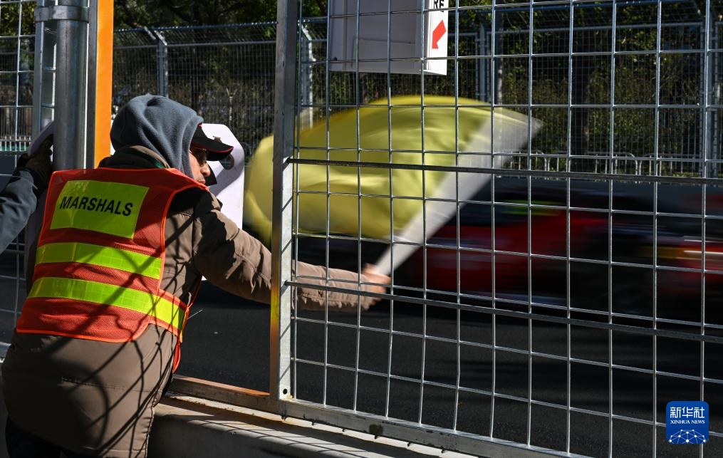10月19日,工作人员在赛道发生事故后挥动黄旗示意。