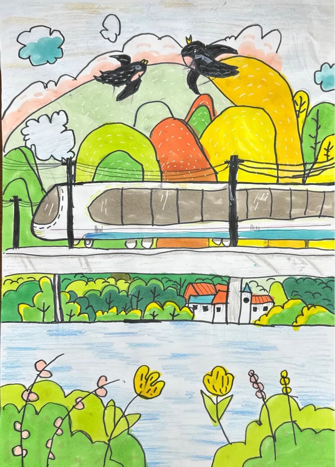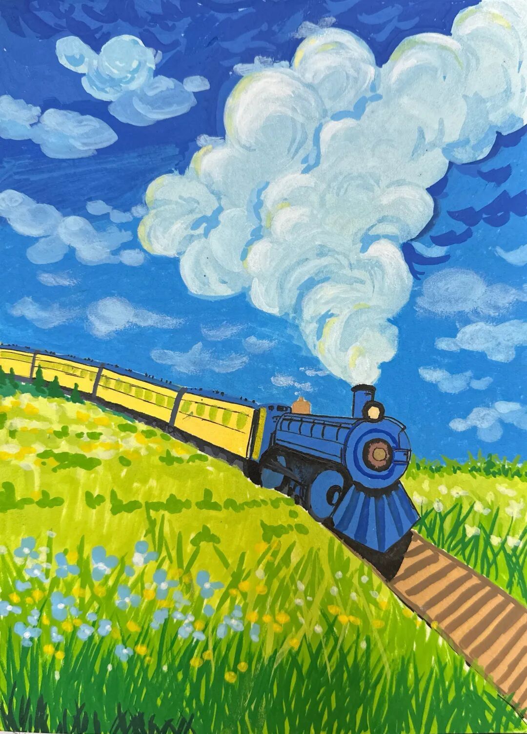 很小的时候,第一次见到火车时,我就惊叹不已。轨道,真是一种很神奇的存在。它明明不过是由一些钢铁棍子组成的,却能让那么大的火车在上面轰隆隆地飞跑。每次火车跑过去之后,大地都会留下一阵轰隆隆的余震,以及一阵颤巍巍的余风。还有,它明明是窄窄的,窄得一步就能跨过去,却又是那么长,长得看不到尽头。