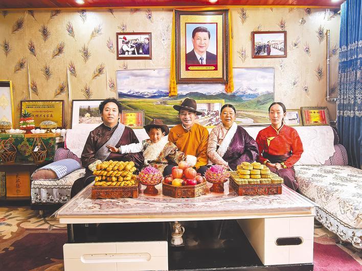 索南才让的家庭幸福账 索南才让(中)一家人合影。 全家端起“生态饭碗”,人均年收入由2万元增长到3万多元。 以前骑马放牧,后来骑摩托车巡护草场。2024年花7万多元买了厢式小货车。 家里开办小商店卖旅游纪念品,一年能增加1000多元收入。 房屋翻新了,安装了阳光房顶棚、太阳能热水器,居住条件越来越好。