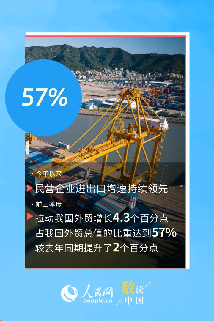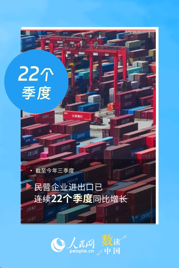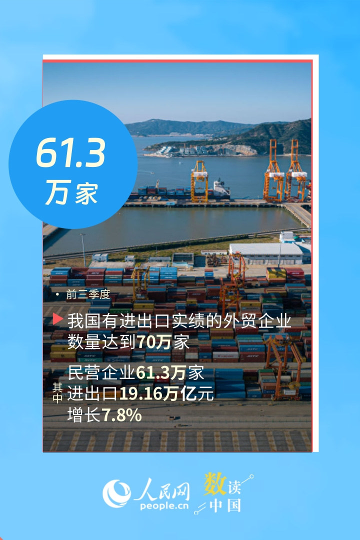 稳定外贸的“主力军”、开拓市场的“排头兵”、技术创新的“探路者”……今年以来,外贸主体积极活跃,民营企业表现突出。从一组数据,看民营企业创新活力持续迸发,为外贸发展提供新动能。
